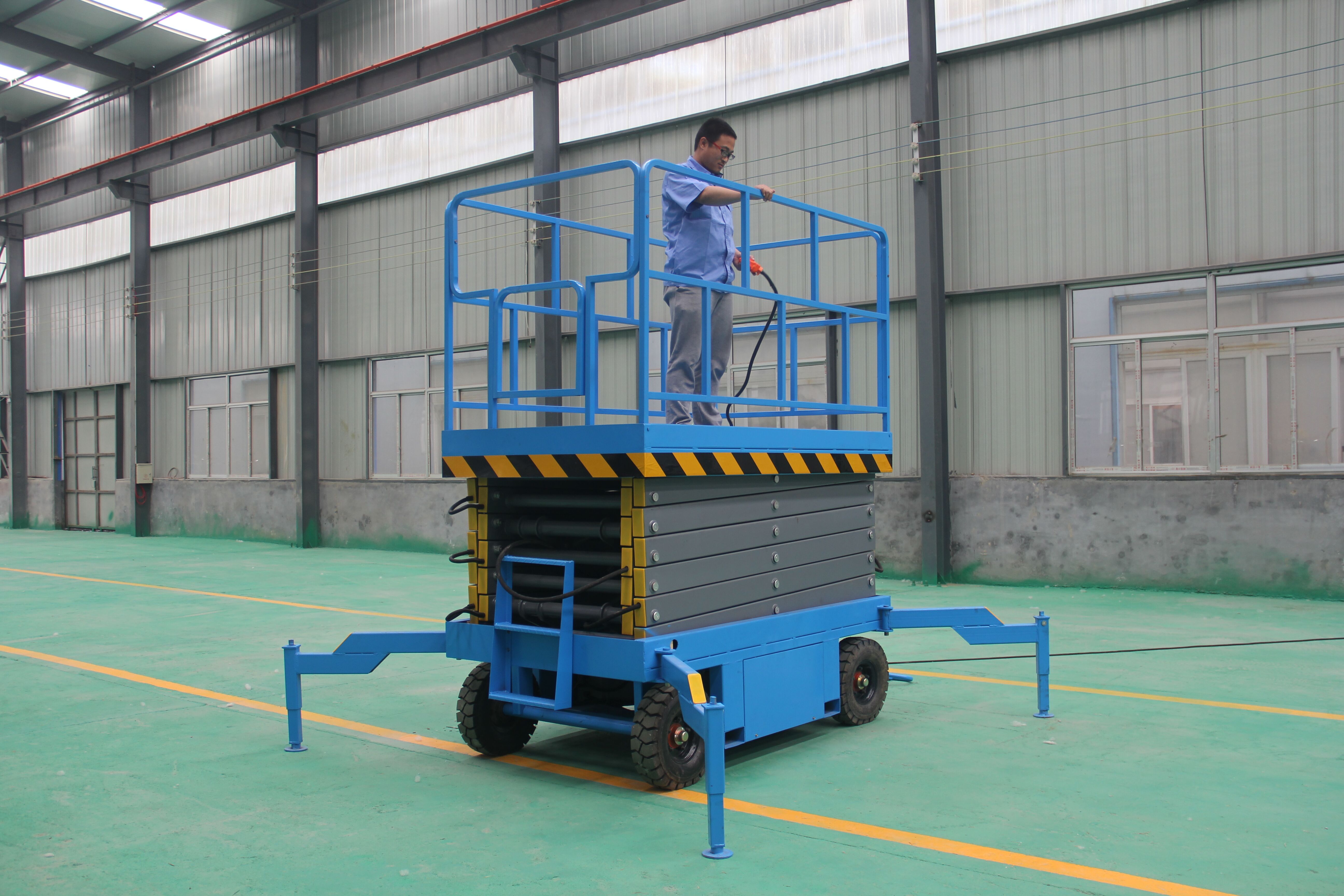 (9)移動式升降平臺的工作區域必須是在空曠的平地上,不允許在坑洼不平的地面運行。